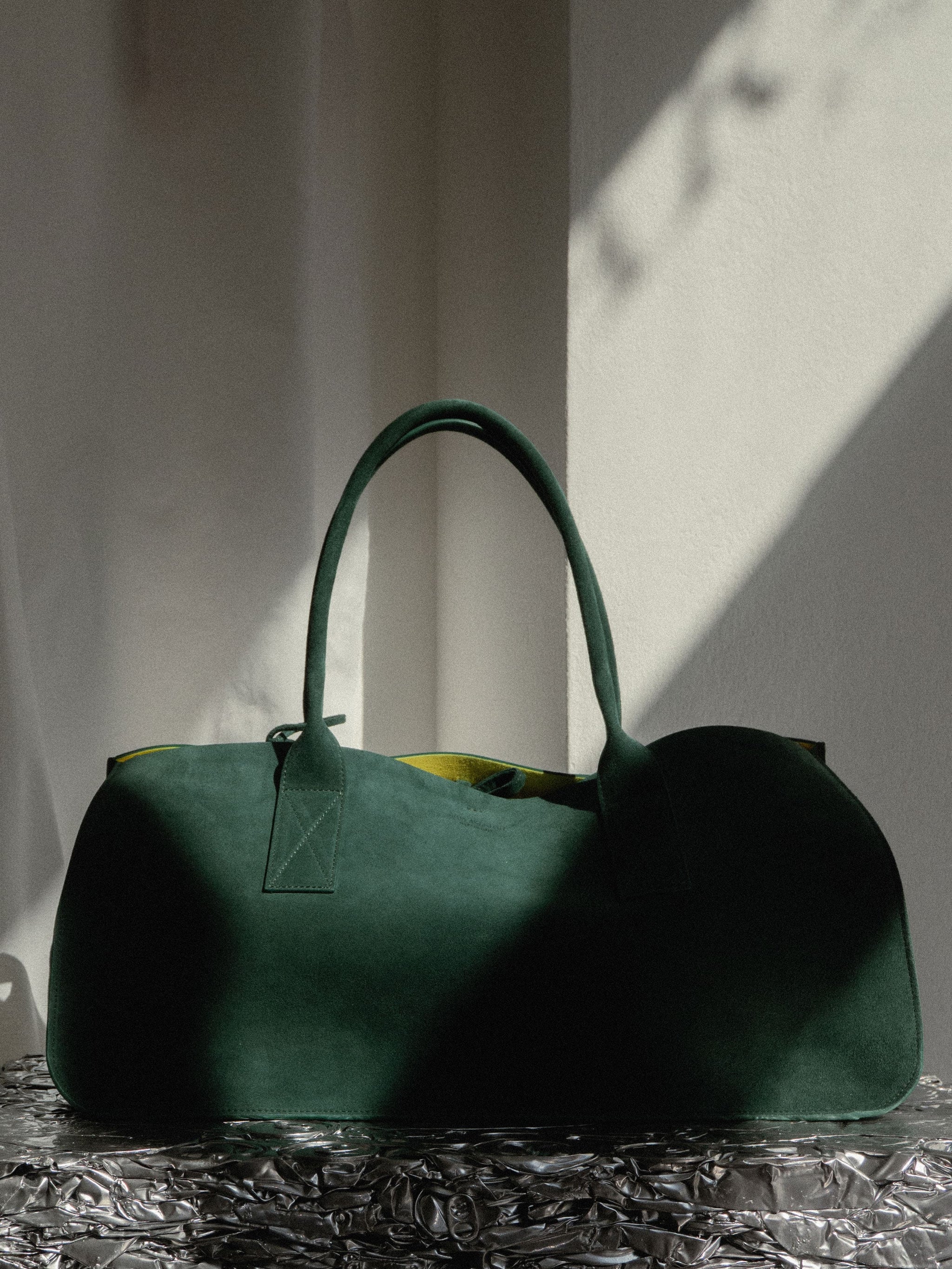 HANDBAGS, OBJECTS, FURNITURE, AND ARTWORK ENTER INTO DIALOGUE, ARRANGED IN A CAREFULLY COMPOSED STILL LIFE.
